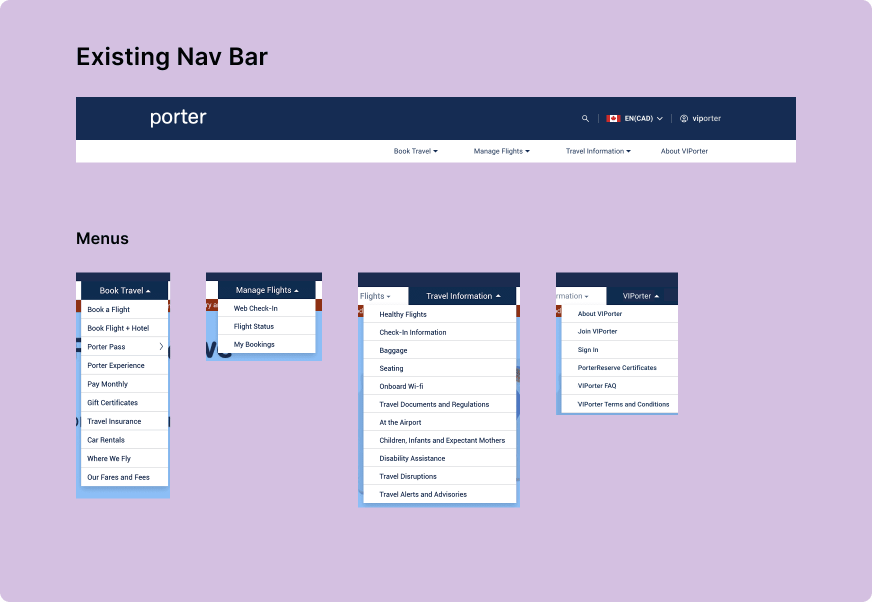 Due to time and resource constraints, I learned that I would not be able to move pages to different menus. It would have been ideal to overhaul the IA, but I had to work within these new limitations.